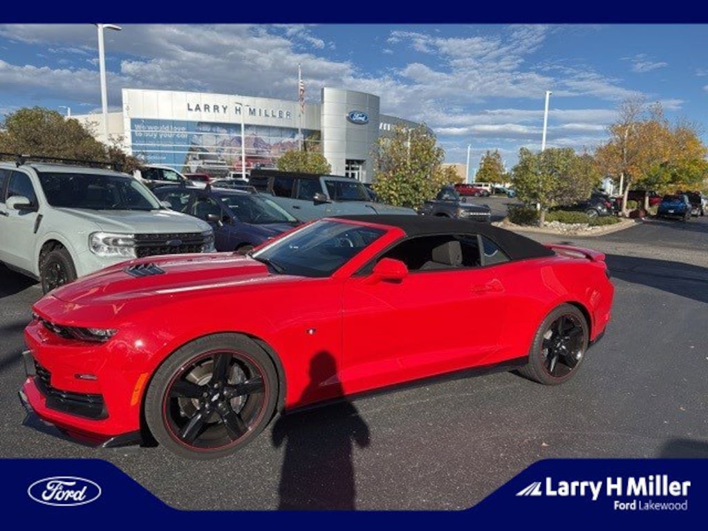 Red Hot 2021 Chevrolet Camaro SS 1SS RWD 10-Speed Automatic 6.2L V8, POWER CONVERTIBLE TOP W/REMOTE CONTROL, CARBON FLASH METALLIC GROUND EFFECTS, SHARP 20'' 5-SPOKE GLOSS BLACK WHEELS W/RED STRIPE, POWER EQUIPMENT GROUP, PERFORMANCE SUSPENSION, BREMBO PERFORMANCE BRAKES, CHEVY INFOTAINMENT PLUS, REMOTE START, LED HEADLAMPS, DEVICE CAPABLE, HANDS FREE BLUETOOTH, CRAZY LOW MILES AND EXCELLENT CONDITION! OTHER OPTIONS INCLUDE: 2.77 Rear Axle Ratio, 4-Wheel Disc Brakes, 6 Speakers, 6-Speaker Audio System Feature, 6-Way Power Front Passenger Seat Adjuster, 8-Way Power Driver Seat Adjuster, ABS brakes, Air Conditioning, Alloy wheels, Apple CarPlay/Android Auto, Automatic temperature control, Bluetooth® For Phone, Brake assist, Bumpers: body-color, Cloth Seat Trim, Compass, Convertible roof lining, Delay-off headlights, Driver door bin, Driver vanity mirror, Dual front impact airbags, Dual front side impact airbags, Electronic Stability Control, Exterior Parking Camera Rear, Four wheel independent suspension, Front anti-roll bar, Front Bucket Seats, Front Center Armrest, Front License Plate Bracket, Front reading lights, Front Sport Bucket Seats, Fully automatic headlights, Glass rear window, Ground Effects Package, Illuminated entry, Knee airbag, Leather Shift Knob, Low tire pressure warning, Occupant sensing airbag, Paddle-Shift Manual Controls, Panic alarm, Passenger door bin, Passenger vanity mirror, Power convertible roof, Power door mirrors, Power driver seat, Power passenger seat, Power steering, Power windows, Premium audio system: Chevrolet Infotainment System, Radio data system, Radio: Chevrolet Infotainment 3 Plus System, Rear anti-roll bar, Rear window defroster, Remote keyless entry, Remote Vehicle Starter System, Second Generation Ground Effects (LPO), Security system, SiriusXM w/360L, Speed control, Speed-sensing steering, Spoiler, Steering wheel mounted audio controls, Tachometer, Telescoping steering wheel, Tilt steering wheel, Traction control, Trip computer, Variably intermittent wipers, Voltmeter, Wheels: SS 20 5-Split Spoke Satin Black (LPO).